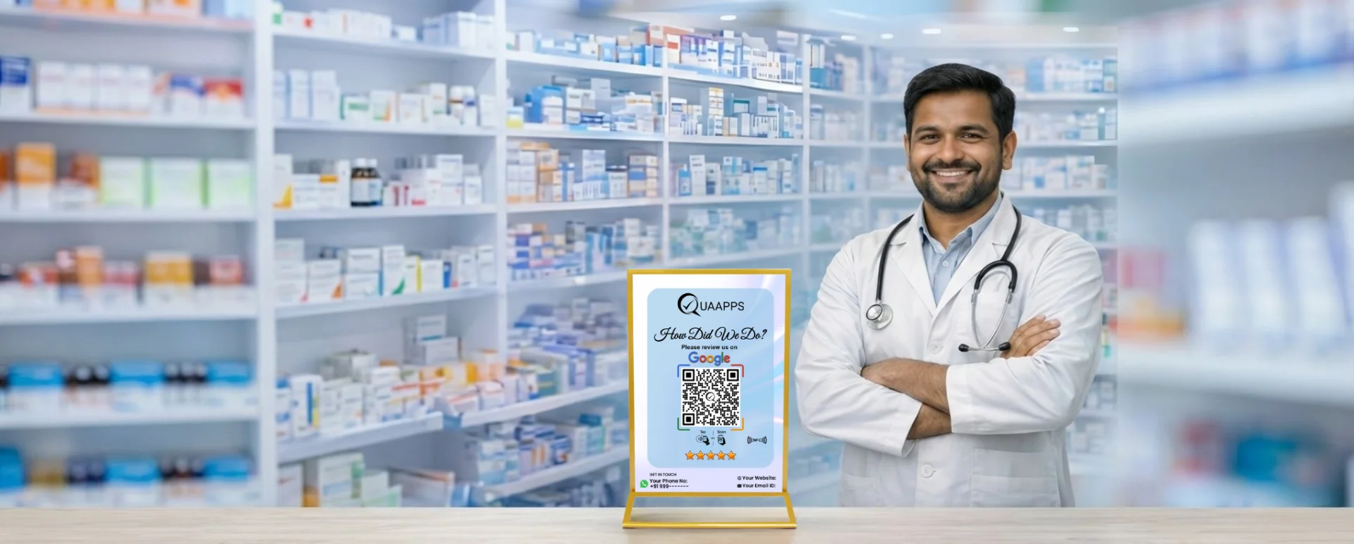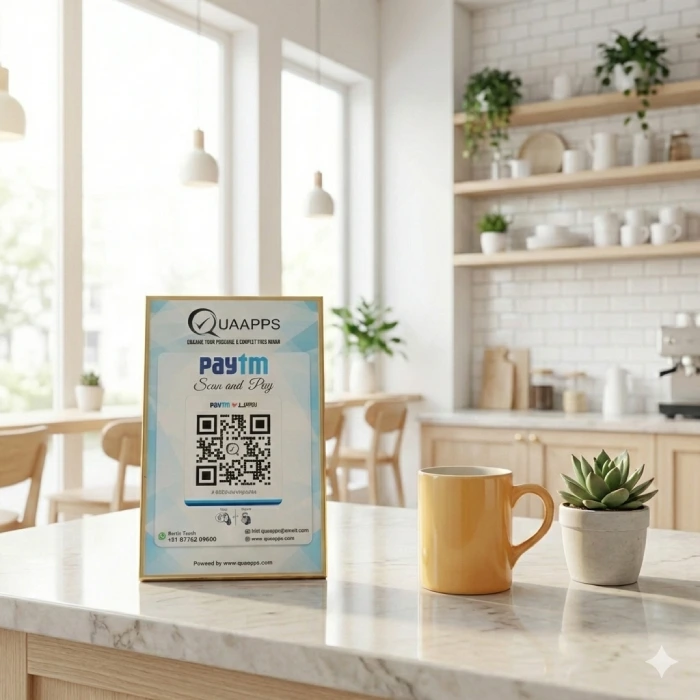 Well-designed with a premium Acrylic finish. Blends seamlessly into the workspace, offers clear QR visibility, and supports stronger brand presence and digital credibility.