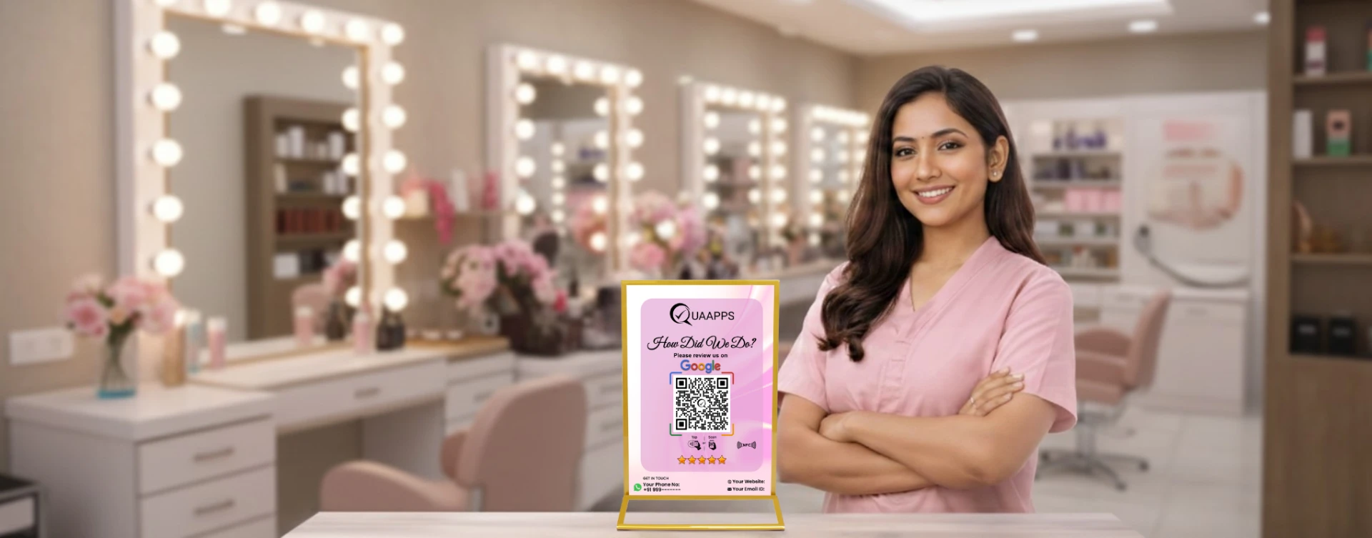 Premium, clean design with a professional look. Elegant on the desk, smooth QR scanning, and helps strengthen brand presence with consistent Google reviews.