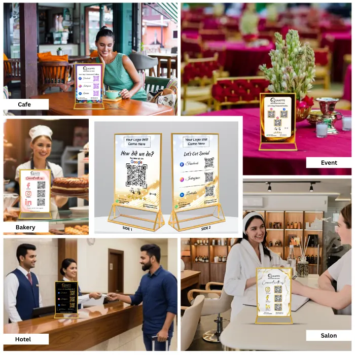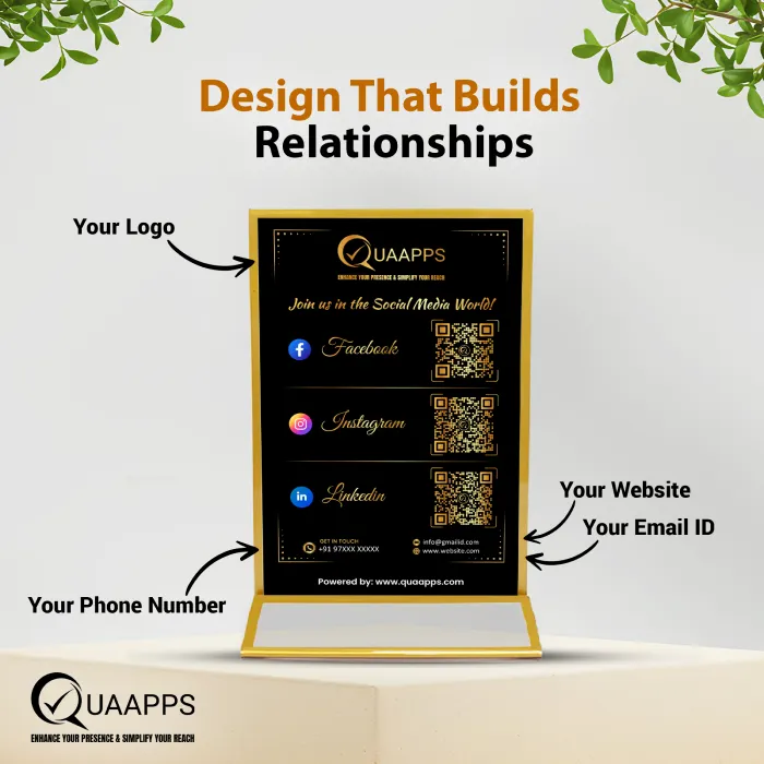 The QR stand simplifies social media access, offering quick, sleek, and efficient scanning for instant connections.