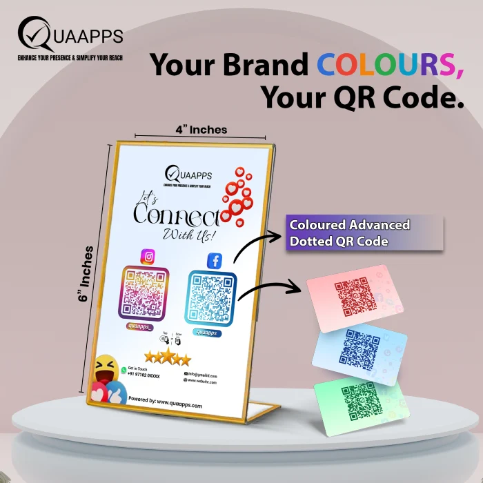 The QUAAPPS L-Shaped NFC Google Review Scanner Stand is designed for customer-facing use where feedback and profile access are required at a single point. It enables customers to access Google reviews and two selected social media pages through tap or scan interaction using compatible smartphones. The stand integrates NFC functionality with a QR code to allow direct access without manual searching. The stand is intended for placement on flat surfaces such as checkout counters, reception desks, and front desks where customer interaction takes place. Its L-shaped structure supports stable positioning, while the 6 × 4 inch size provides clear visibility with minimal counter space usage. The stand features a scratch-resistant surface with a polished finish and supports customization with business logos, names, and selected themes. It is suitable for use in shops, restaurants, cafes, salons, clinics, and office environments where digital feedback access and profile visibility are part of regular operations.